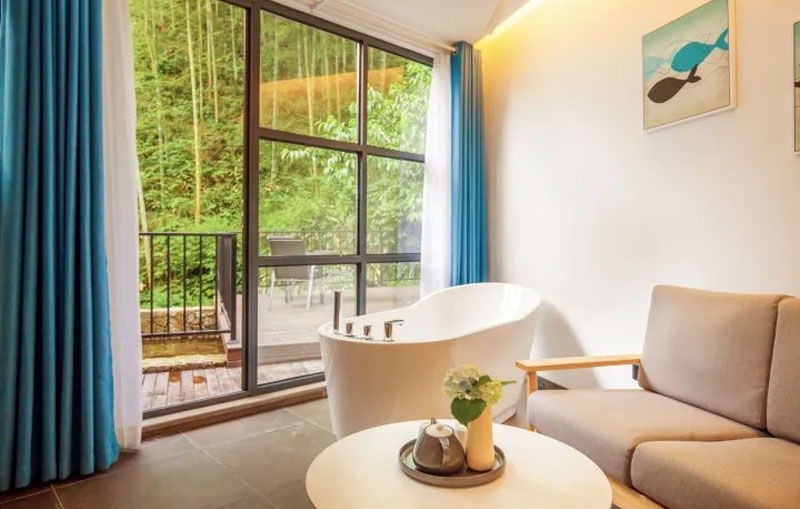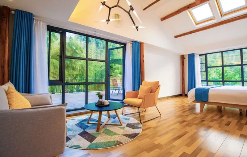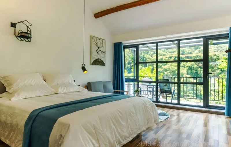 2018年开业,2018年装修,6间房。安吉蓝莲花开·山楂树民宿:安吉乡村公路非常的漂亮,天然与人文景观的相融,让感观与眼观完全放松与愉悦。沿途,一片枫树,一片竹林,一泉小溪,一片稻田,一条美好的小路延绵到村子的尽头,遇到了一段主人修的小长城,便停下车来,就在一条小溪之边,瞬间整个人都精神了。
