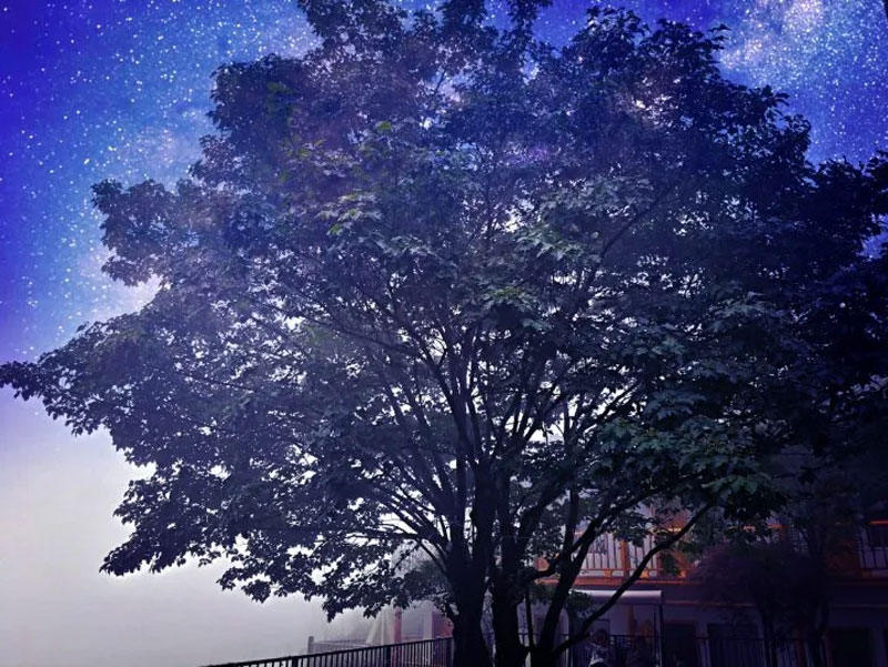 管家把行李拎到客厅。到来之人不肯入内,只因在门口平台之上,整个郁郁葱葱山脉近在眼底,酸爽得想大叫,歇斯底里的那种。轻风,绿意,霞光,初月,印染在一起,美得不能言语。这里有一棵200多年的山楂树,恋不恋爱随便你!